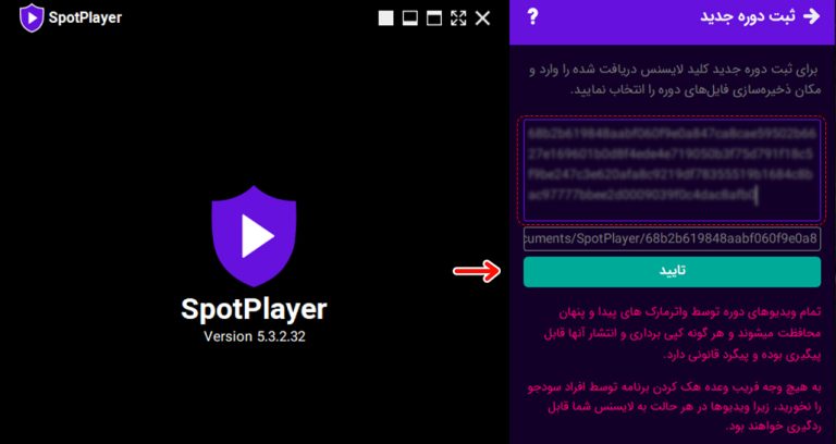 وارد کردن کلید لایسنس در نرمافزار اسپات پلیر